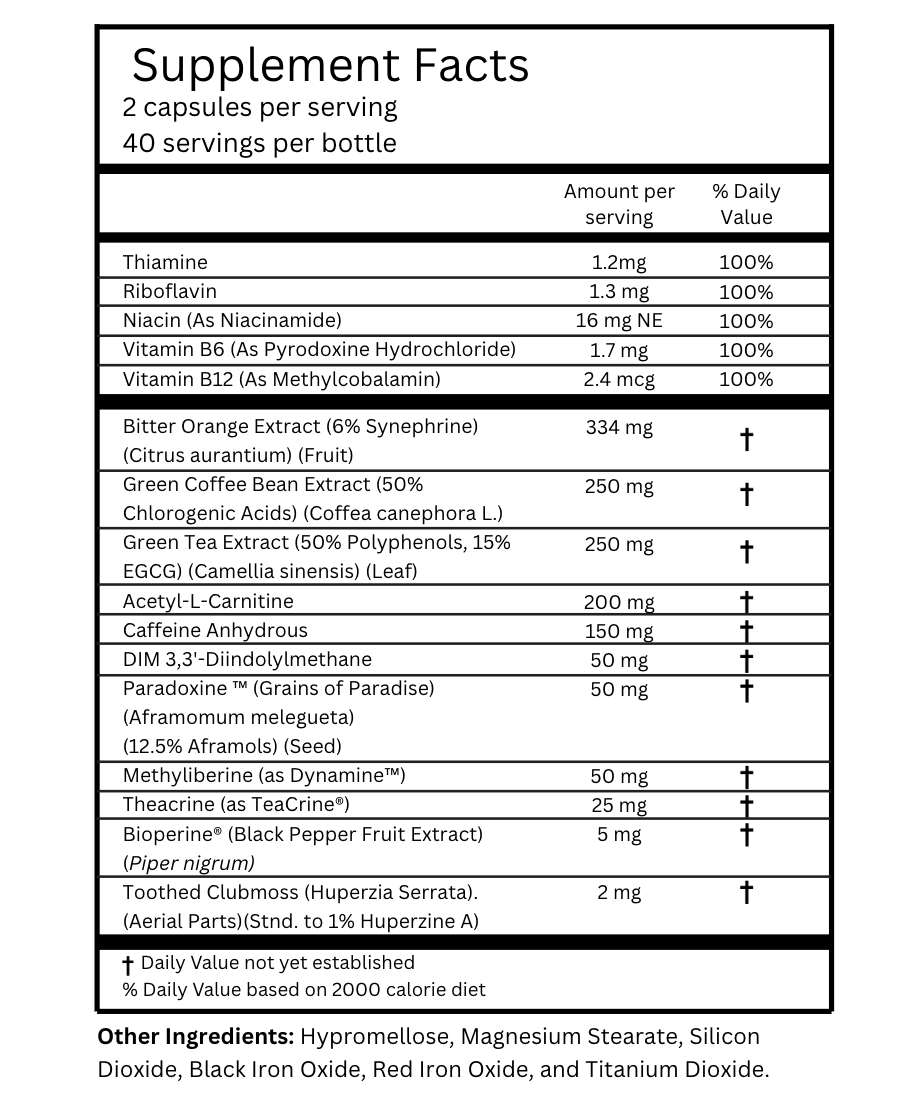 This product is a high-performance fat burner engineered specifically for men who want to burn stubborn fat, increase energy, and maintain lean muscle. This advanced thermogenic formula blends potent botanicals, metabolic enhancers, and cognitive boosters to support fat loss while preserving intensity, focus, and stamina.